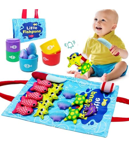Skills Development: This Montessori fishing game stimulates fine motor skills, hand-eye coordination and concentration in children aged 2 and above. Ideal for learning and having fun!.Complete 22 pieces: Includes 15 marine animals (fish, starfish, shells, turtles), 1 coloured fishing rod, a fabric game board with underwater pattern and 5 sorting cups.Safe & Durable Material: Made of soft and non-toxic fabric, suitable for small hands. Sturdy finish to withstand intense play.Versatile Educational Game: Encourages learning about colors, shapes and counting through fishing and sorting activities.Practical & Portable: Lightweight tray with carry handles for easy storage. Perfect for travel or playdates.IDEAL GIFT - Colourful packaging ready to give for Christmas, birthday or as a first Montessori game.Warning:To be used under the direct supervision of an adult ...