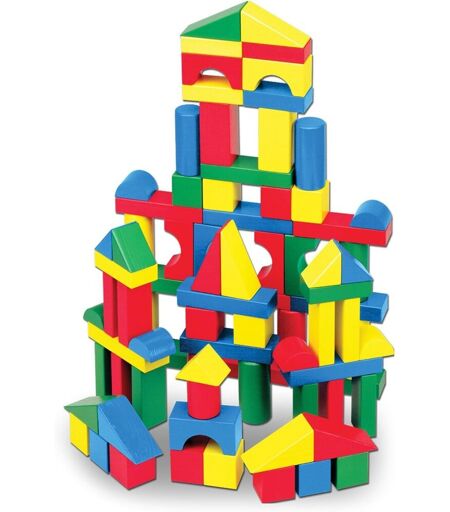 HOURS OF EDUCATIONAL ENTERTAINMENT The Melissa & Doug wooden building blocks set includes 100 durable wooden blocks in 4 colors and 9 different shapes. It is a classic educational toy that provides hours of hands-on, screen-free play and learning. Your little builder will take great pleasure in stacking, building and shooting down with countless colourful combinations, and you'll know that your child spends precious time acquiring motor skills of precision and dexterity, color and shape recognition, and premath skills.STIMULATES CREATIVITY: Our game is designed to entertain children, but it also introduces early math concepts and helps children develop strong motor skills and even resilience when they do building, block rollover and rebuilding experiments.DURABLE AND SAFE CONSTRUCTION: Although our colorful building blocks are made of solid wood, they are lightweight and therefore safe for children. The blocks have rounded edges and a smooth painted finish that won't crack when playing.A PERFECT GIFT FROM 3 TO 8 YEARS OLD - The Melissa & Doug wooden building blocks set is a great gift for kids aged 3-8. Add the Melissa & Doug Wooden Lock Tray to complete this manual play experience.THE STANDARD OF EXCELLENCE OF EARLY CHILDHOOD GAME: For over 30 years, Melissa & Doug have created beautifully designed products to spark imagination and creativity, which NBC News, in the United States, calls the ""standard of excellence in early childhood play"".100% HAPPINESS GUARANTEED: We design each toy to the highest quality standards and to fuel the mind and heart. If your child does not like the toy, give us a call and we will find a solution. Our phone number can be found on every product.Warning:Not suitable for children under 36 months.Warning:To be used under the direct supervision of an adult ...