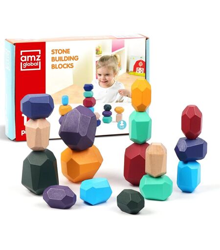 High play motivation - Interesting shapes, sizes and colors create excitement during the game and motivate to try new difficulties. These Montessori stacking stones offer many varieties and can be used in a very different way in free play. A challenge for every child that arouses enthusiasm.FUN TO CREATIVITY - Your child learns very quickly to use their own creativity using stacking and balance stones to try out new possibilities. Whether alone or with other children, these wooden building blocks promote creative diversity and allow your child to discover new ideas.MANY PLAY VARIATIONS - Be surprised at what your child builds with the stackable and balance stones. Countless play variations offer children the perfect condition to always build new works of art or integrate wooden building blocks into existing play equipment. All stones can be stacked in different ways and can be assembled differently.Natural material: wood is an ideal material for toys. It is very easy to grip and feel and is also very strong, lightweight and durable. So these CE certified wooden stacking and balancing stones give children a good playing feeling. All surfaces have been polished, corners and edges are sanded for even more enjoyment.Ideal for on the go - In their compact packaging, the stackable and balance stones can be easily taken anywhere and are therefore an ideal companion for children. Whether at the lake, restaurant or on vacation, these wooden stones will not let you get bored. ...