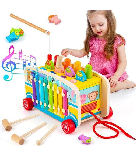 [4-in-1 wooden toy]This 1-year Montessori offers 4 game modes: typing the mole, pulling the car-bus toy, playing xylophone and fishing. Interesting shapes capture children's attention, and bright and bright colors can also stimulate their color perception and contribute to cognitive development.[Safe and durable]Educational games for 3 years and older. The 2 year montessori is made of natural wood and water-based paints, ensuring safety and durability. In addition, it has been polished in several layers, with smooth edges and solid structure, so that children can grab and play easily.[Parent-Child Interaction]Montessori 1 year old toy is the ideal choice for spending leisure time with parents and sharing the child's growth. It promotes parent-child interaction and allows you to enjoy happy family time with your child. It is an ideal motor skills toy for kids and a great choice of activity and development toy for kids 3 years and up.¿[GIFT IDEA] The mole taupes game can help the development of hand-eye coordination, while fishing helps to promote fine motor skills. Playing a wooden xylophone promote the exploration of simple musical concepts. The Montessori 2 year old games is a great gift for boys and girls 3 4 5 6 7 years, and suitable for any occasion such as birthdays, children's day, Christmas, Halloween and Thanksgiving.[Worry-Free Purchase]12 months worry-free warranty; This is a totally risk-free purchase; If you encounter any doubts or dissatisfaction when using Montessori 2 year game, please feel free to contact us.Warning:Strangulation hazard. ...