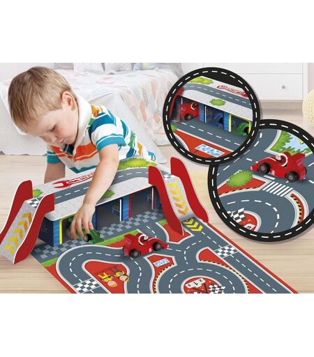 CAR GAME: A real track for an exciting speed race! Roll the little wooden cars and have fantastic adventures.WOOD: Cars are made of wood! Great! The feeling is different and pleasant.MONTESSORI METHOD: Alternative education method based on self-confidence and soft learning.Contents: This product contains small wooden cars, a cardboard track to assemble and instructions (English language not guaranteed).EDUCATIONAL GAME: This game helps develop hand-eye coordination, creative thinking and autonomy.Warning:Not suitable for children under 3 years. For use under adult supervision ...
