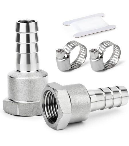 2 Pièces Raccord pour tuyau,16 MM Barb à filetage femelle 1/2"" BSP,raccord pour tuyau,acier inoxydable 304,pour carburant/air/eau/huile