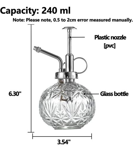 Verre Plantes Vaporisateur D'arrosage,240ml Rétro avec Pompe Supérieure Arrosoir,Une Main Darrosage Pulvérisateur Brumisateur pour Jardinage Plantes,L'alcool Transparent-Buse argentée