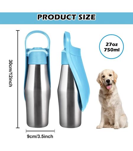 Dog Water Bottle 750ml Stainless Steel 180° Foldable Portable Dog Water Bottle For Walking Parks Camping Blue Size A
