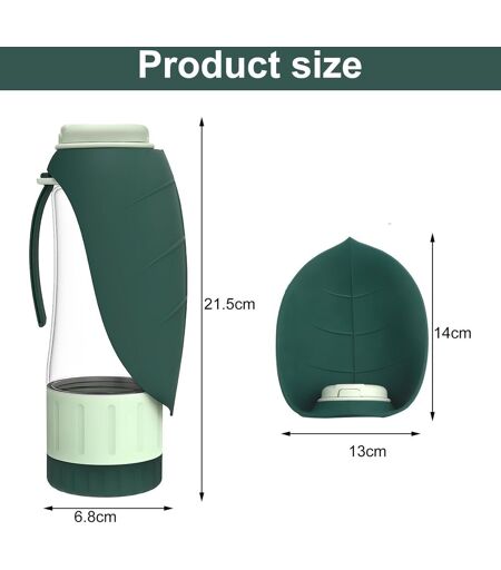 DUAL USE DESIGN The dog water bottle for on the go features a separate dual-use design that perfectly combines the water bottle and food bag. Foldable sink for easy water supply, rotating switch at the bottom of the dog bottle for travel for easy food distribution, meet your pet's water and food needs anytime and anywhere.Premium Portable Dog Water Bottle The portable dog water bottle is made of premium plastic and food grade silicone, safe and odorless, durable, essential for dogs on the go.[Folding Leaf Water Sink] Simply unfold the lid, the dog bottle immediately transforms into a convenient water basin that can be folded and stored after drinking. Top exit button, press to easily dose water, side close button, 360° leak-proof and no leakage, the dog bottle on the go provides a refreshing experience for your pet.Comfortable & Easy to Carry The dog water bottle comes with a silicone band that is easy to carry, it is very convenient for you to hang it on your bag or bike. The perfect size of the dog water bottle for on the go makes it easy to carry in your backpack when you are on the go, take it with you and you will be relaxed every time you go out.Widely Used - With a dog water bottle for on the go, the water bottle is perfect for small, medium and large dogs with small, large and large noses. Cats and rodents can also drink from the dog water bottle on the go. ...