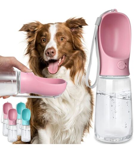 Dog Water Bottle,Leak-Proof Portable Water Dispenser With Feeder For Pets For Walking,Hiking,Travel,Food Grade Plastic (19 Oz,Pink)