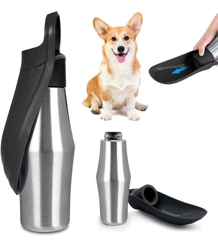 Dog Water Bottle,750 Ml,180 Degree Foldable Portable Stainless Steel Water Bottle For Training,Black,1