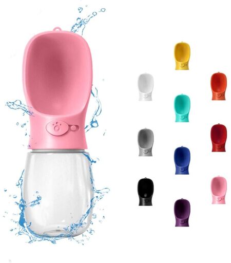 Color and Size:Pink, 350ml, this size is suitable for small and medium dogs, or if you just take your puppy for a short walk.Function: designed with silica gel seal which can effectively prevent water leakage. One key lock to ensure water does not leak. Leak-proof You can put it in your backpack without worrying about it leaking.[Convenient to Carry]: Sufficient capacity and compact design of the water bottle is ideal for your pet dog or cat when outdoor walking, running, hiking, traveling or playing etc.You can put it in a backpack or hang it on your hand with a rope, very easy to carry anywhere you want.[Easy to use]: One key Open/lock water, one-handed operation, open the lock key, press the water key to fill the water, release to stop the water, very easy to feed your dogs. Unused water can easily enter the container by pressing the water button.Safe and Durable Materials - Made of high quality material, lead-free, BPA-free, safe and durable, easy to disassemble and clean. Enjoy safe and fun outdoor action with your pet. ...