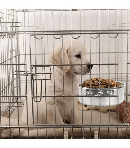 SPILL PROOF DESIGN - The ingenious design of these bowls helps prevent food and water spills, keeping your pet's feeding area clean and mess-free. Raised edges ensure everything stays in the bowl, even during enthusiastic meals or drinks.DURABLE & RUST RESISTANT MATERIAL - Made of high quality stainless steel, these bowls promise long-lasting durability. Rust and damage resistant, they ensure safe and healthy meals for your pet for years to come.SPACE SAVING Our dog bowls are designed to fit perfectly in your pet's crate or crate, making them a perfect choice for small living spaces or for those who frequently travel with their pets. Save space without compromising your pet's comfort.EASY INSTALLATION Each bowl comes with a stand that can be securely fixed on your pet's cage. Installation is a breeze and requires no tools, saving you time and effort.SUITABLE FOR PUPPY AND LARGE DOGS - Available in diameters of 14cm and 16cm, these bowls are versatile enough for dogs of all sizes. Whether you have a small puppy or a large breed, our bowls will meet your pet's dietary needs ...