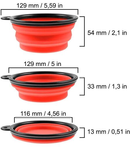 It is practical, foldable and can be attached to the belt, and anywhere when you are walking outdoors with your pet. No occupied space. Its hook is of great use.This bowl is ultra practical for hiking and traveling, it is easy to fold and stays strong when unfolded.The depth of the dog bowl is adjustable and can hold a large amount of food or water.The depth can be adapted to the amount of water needed or dogs of different sizes. Recommended for small dogs.Durable and very easy to clean. It can be washed with water or dishwasher ...