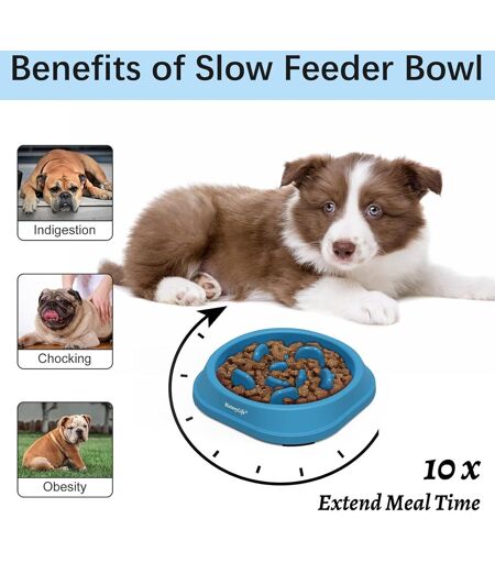 SLOW FOOD INTAKE - The puzzle dog bowls designed with ridges and maze patterns help your pet eat slower, especially for pets who engulf their meals. These small breed dog bowls help pets digest food better, eat slower and chew. These bowls are suitable for small breed pets.REDUCE ANXIETY & ENHANCED DIGESTION: These bowls promote slow food intake, ideal for fast eaters, protect against various problems, indigestion, bloating, choking and canine obesity. This bowl keeps pets entertained, slowing down their meal and preventing overfeeding. This bowl helps relieve bowel disease and promote healthy eating habits.NON-SLIP BASE & MAZE INSIDE: The non-slip base at the bottom of the small breed dog bowl keeps it in place. The puzzle bowls for small dogs are enlarged so that they are not knocked over by pets, and thus avoid scattering of food. The raised parts are not too high, and the spaces are wide, prompting the animal to use its tongue to get the food, adding fun and a little difficulty to meals.FOOD VARIETY & SAFE MATERIAL - These bowls are suitable for dry, wet and raw food. Each bowl holds approximately 100g of kibble. The small dog bowl is made of food grade PP material and non-toxic. These small bowls are durable, wear resistant, not easy to damage, so pets can enjoy themselves safely.EASY TO CLEAN - Our bowls are dishwasher safe in the top rack and can be hand washed with warm soapy water and then rinsed. The less time you spend cleaning the bowl, the more time you can spend on your pet. The bowl allows interactive feeding and reduces your workload.- Small puzzle bowls stimulate dogs' natural instincts, encouraging them to eat slowly and avoid dog obesity. Watch your dog so that they do not bite the bowl; it is not a chew toy. - - ...