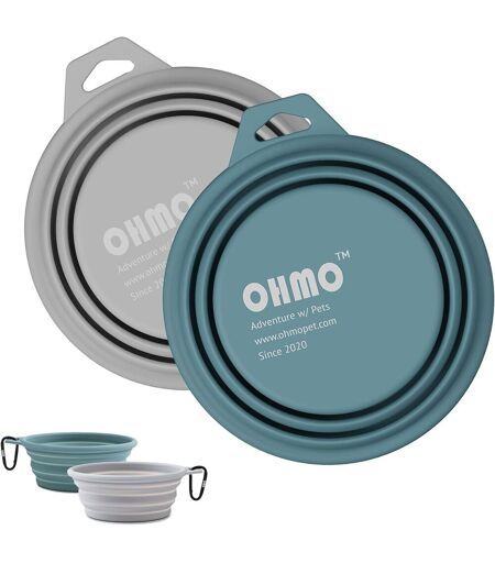 Collapsible Dog Bowl (2 Pack,400ml,Light Blue & Ash) Premium Silicone Pet Bowls For Cats And Dogs,Portable Dog Travel Bowl