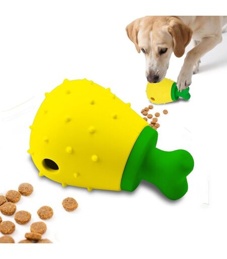 Interactive Dog Toy,Dog Toy Dispenser Treats Slow Puzzle Silicone Chicken Paw Design,Anti Boredom Mental Stimulation Cleaning Teeth Enrichment Qi,Yellow