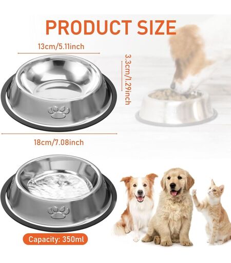 [Premium Quality] Made of high grade stainless steel, our dog bowls are rust resistant, anti-corrosive and safe for your furry friend.[Anti-Tip Feature]Our dog bowls are designed to prevent tipping, ensuring your pet's meal stays in the bowl and not on the floor.[Non Slip Design]Our dog bowls come with a non slip rubber base that keeps them in place while your pet eats. The rubber ring also protects your floors from scratches and damage.[Easy to Clean]Our stainless steel dog bowls are easy to clean and safe in the dishwasher, making cleaning meals.[Versatile Use] With a capacity of 350ml, our dog bowls are perfect for dry or wet food, snacks and water. Ideal for medium dogs weighing 10-25 kg. ...
