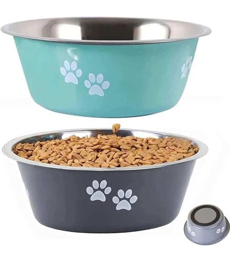 Dog Water Bowls: A set of two dispensers, ideal for serving and combining dry and wet food, treats and water for your pet. Two in one.ANTI-SLIP & NOISE FREE BASE - This pet feeder has a non-slip base that protects floors from possible scratches and prevents slipping while your pets enjoy their food. In addition, its compact design saves space, allowing you to place a rug if desired. Its flat bottom is specially designed to prevent food spills, ensuring a clean and tidy dining experience.Ideal size: the diameter of the dog bowl is 17.5 cm and the height of the bowl is 6 cm. Each bowl holds 29 ounces of food and 850ml of water, suitable for small to medium pets weighing up to 20kg.Stainless steel material: the dog bowl is made of high-quality and durable stainless steel, which is resistant to oxidation, corrosion and the formation of unpleasant odours. Its exterior gives a stylish and unique look that your pets will surely love.Easy to clean: washing the pet food bowl is simple, just rinse it with water. Its design makes it easy to clean and use, while its corrosion resistance ensures its durability over time. ...