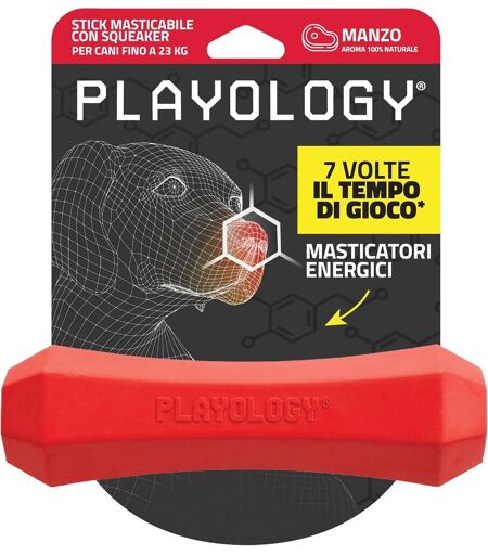 DISCOVER PLAYOLOGY WHISER BITING STICE: With its fun noise and mouth-watering 100% natural beef scent, thanks to our Encapsiscent technology, this is the chew stick your dog has been waiting for. In addition, it is designed to float, making it ideal not only for the garden or park, but also for playing in a pool, pond, lake or beach. The medium size is ideal for dogs between 7 and 16 kg.ENCAPSISCENT TECHNOLOGY: The dog's sense of smell is 10,000 times more developed than that of humans. Dogs perceive the world through smells, that's why our chew toys are made with 100% natural fragrances they love. Each Playology dog toy is infused on a microscopic scale with a 100% natural fragrance. The delicious scent that comes out with every bite of teeth will keep your pet interested 7 times longer than with unscented toys.EASY TO CLEAN: Dirt and sand embedded on the surface of a toy can end up damaging your dog's teeth. That's why all our rubber toys are easy to clean. Thanks to our Encapsiscent technology, the 100% natural fragrance is impregnated into the material of each toy, so you have no risk of eliminating that taste that your dog loves so much by cleaning it. Simply rinse with warm water to clean and then blot to dry.FOUNDED BY DOG LOVERS: When we developed Playology, we studied the scientific data revealing what dogs really like in a toy. We have reviewed the safety standards in place to protect human children and designed our dog toys based on these standards. Each Playology toy is tested in accordance with ASTM safety guidelines and CPSIA standards for lead, phthalates and other toxins deemed hazardous. At Playology, we are all committed to designing and developing the best, safest and healthiest toys possible.HAPPINESS GUARANTEED: Playology work goes beyond manufacturing. We want to amaze dogs with our toys built to last. If you have any problems or your four-legged friend is not satisfied, we will be happy to help you. Your dog's happiness is our priority! ...