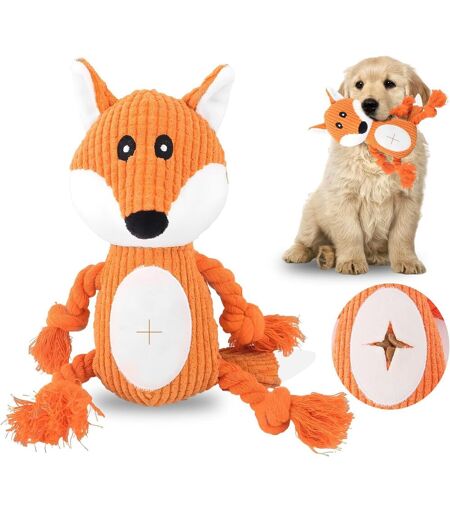 Premium Material -- The dog chew toys are made of natural cotton and soft plush. The body and limbs of this dog toy we designed for dogs are padded with strong ropes, the material is non-toxic, tasteless, soft cotton for comfortable touch for dogs without hurting gums and mouth, without breaking easily.Funny Squeak-- This squeaky dog toy has a built-in squeaker, this sound toy will make a loud and clear noise when your dog bites in, and its tail were made from crinkle paper, this design is very easy to attract the dog's attention and increase the fun when the dog plays.Teeth Cleaning--This plush dog toy helps maintain your dog's dental and oral health by chewing. Small or large dogs clean their teeth by chewing this toy, helping the puppy maintain dental health and redirect bad biting behaviors.REDUCE STRESS AND ANXIETY -- The squeaky dog plush toy is perfect for recovery game or as a comfort toy for your four-legged friend, it could also increase a dog's exercise to control their weight by playing tug of war or fetching games. Relieving your dog's depression, boredom and anxiety, and reduces the risk of destroying your sofa or flower bed.EASY TO CLEAN -- These puppy toys can be washed by hand or machine and easy to clean. If there is any problem when using the dog toy, please feel free to contact us at the first time, we will solve it for you immediately. ...