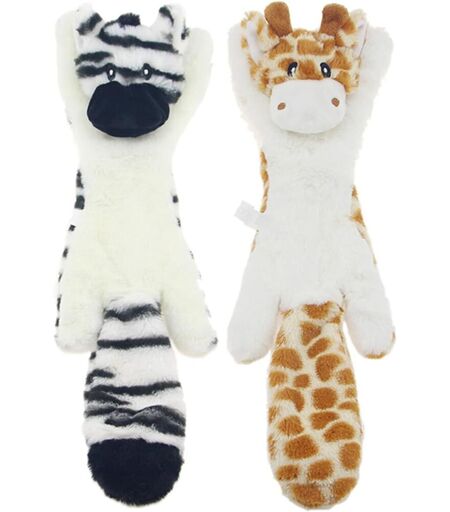 Safe and durable material ¿ without stuffing, you don't have to worry about your dog eating the stuffing. Made of non-toxic and soft plush material, will not hurt dog's teeth and mouth. Safe for your pets to chew and clean your dog's teeth.SQUEAKY CHEW TOYS - Each toy includes 2 squeakers, one in the head and one in the tail. It will make a squeaky voice when your dog bites it and can attract great interest from your pets. They can enjoy a long time game, keep them busy and stay away from boredom.Cute animal design - The deer and zebra design dog toys are cute and fun. Your dogs can freely move the unpadded dog toys because they are light enough for them to carry, their natural hunting instinct will be satisfied.Machine-washable ¿ Our squeaky dog toy is machine or hand washable. No stuffing means no need to worry about the mess caused by toy breakage.Friendly reminder: these unpadded dog toys are not intended for aggressive chewers. Dog toys are not indestructible. ...