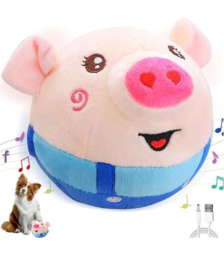 Active and mobile plush toy: Active moving pet plush toy brings joy to your dog with vivid sounds and jumping movements. It can be charged via USB port and has two recording and music modes, you can record the sound that makes your dog excited or play the music directly. Pets will want to chase the ball, bite, run and run with recording or music.It adds interactive fun and stimulates your pet's vitality to play happily.[Bounce & Squeak Fun]This giggle ball toy has realistic sounds that respond to shaking and touching, prompting your pet to interact with it. The versatile design allows them to be entertained and trained while keeping them company. The ball can also keep your pet company in your absence, helping them exercise and play.Concentration can be achieved through irresistible bounces and squeaks, which helps them spend energy and relieve stress and anxiety, making them calmer and more relaxed.[Convenient to Use]This squeaky dog toy is simple to use, just press the switch of the vibrating ball to make the toy go into recording mode, when recording is complete, it plays the recording and starts vibrating.Press the switch again and the toy will switch to music mode and start vibrating.This simple design makes dog owners easy to amuse their dogs with this toy.[Easy to Install & Washable]This interactive pet toy is easy to remove and clean, just open the velvet of the plush cover from the back, remove the bouncy ball, wash the plush cover with water and place it in a ventilated place to dry. Convenient and easy to handle, it also allows your pet to always have a clean and safe toy to play with.[Widespread Use]This plush pet toy ball can be played in halls, parks, gardens, lawns, beaches and anywhere you like.Stimulate your dog's intelligence and entertain him. The hard vibrating ball is wrapped in a thick pig sheath on the outside, double protection against dog bites and release your dog's nature to tear around. ...
