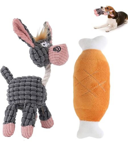 [Plush Dog Toys]Our soft and durable plush dog toys are the ideal toy for small and medium dogs as well as teething puppies. They are the perfect companion for playful puppies and are loved by all breeds at all ages. Not recommended for aggressive chewers or large dogs.[Sound Toy for Dogs]These two adorable soft toys serve as companions for puppies, helping to reduce boredom, anxiety and depression in dogs.[Small Dog Toy]Our dog boredom toy stimulates playful activity and keeps puppies' mouths busy and satisfied.[Easy to Clean]This dog toy is machine washable, lightweight and soft.[Tips] Although durable, this toy is not indestructible and will end up being prone to damage due to chewing. Please monitor your pet and inspect the toy regularly for wear and tear and replace it if the damage could be considered potentially harmful to their health. ...