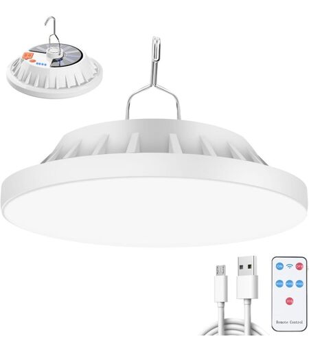[Solar & USB Rechargeable Camping Light with Remote Control]Built-in 3600mAh 18650 rechargeable battery, this rechargeable camping light can be charged by solar panel or USB cable (included). 4 indicator lights show you the power levels 25% 50% 75% 100%.[120 Watts Super Bright & 5 Tent Lighting Modes]Equipped with 120 ultra bright LED chips, this high brightness led solar camping light can easily illuminate a canopy or a whole room. Battery life up to 48 hours on a full charge. 5 lighting modes: High, Medium, Low, Strobe, SOS.[Ideal for Emergency Situations and Survival Rechargeable Camping Light] The powerful LED camping lantern with a USB output socket that allows you to charge mobile phones and other USB-powered devices in emergency situations. Portable size and foldable metal hook for easy storage and hanging on top of tent or backpack.[Self-Control & Remote Control-Solar Camping Light] Control the distance up to 5 m, you do not need to get up to close the light with this remote control. If the remote control battery is depleted, you can still use the pressure switch on the camping lights to turn them on. Please note that in the center of the remote is a transparent dust grid that you need to remove yourself before use, otherwise the remote control will not work.[IPX7 Waterproof & Sturdy] LeKaufen camping accessories camping light are made from high quality ABS materials, strong and durable structure with good impact resistance. IPX7 waterproof allows comfortable use in heavy rain or snow. Widely used for BBQ pavilion, BBQ shelter, glamping, hiking, picnic, camping, emergency prevention and more. ...