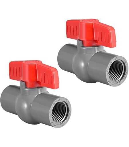1/2"" PVC Bille Vanne x 2PCS Compact T-Handle Rond Prise Femelle Fileté Bille Vanne pour Eau Fourniture Ligne Irrigation Tuyau Raccord Système,[Rouge Gris]