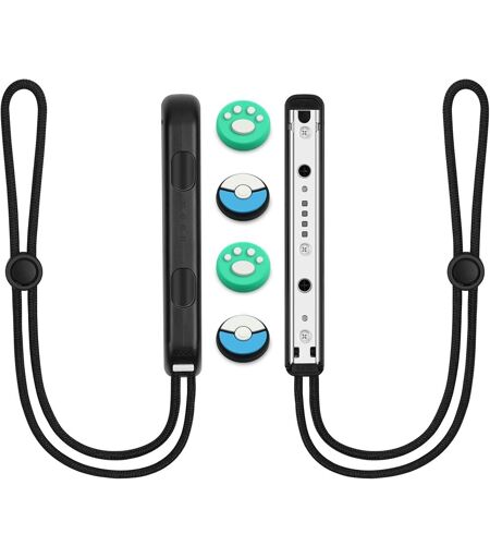 [Package includes]You will receive 1 pair of Joy-Con Gamepad Lock Wrist Strap for Switch Controller. Equipped with 2 green cat claw toggle caps + 2 blue poke ball rocker caps, which can increase the friction between your fingers and the controller, providing you with a more enjoyable game experience!.[Easy to Use]The gamepad strap is compatible with NS Switch controller, has the same guide as the and can be easily installed by ""sliding""; There is a locking buckle at the end of the Switch bracelet, which can better repair the game controller.[High Quality Material] The switch strap is made of high quality ABS material, soft and comfortable, soft touch non-slip surface provides better grip and prevents your fingers from slipping at critical moments, making your game more fun!.[Switch Handle Features] Clear marks, - prevent improper installation of the Joy-C handle, and the oversized light signal provides more instructions. It also features upgraded SL and SR buttons with auto lock and premium sliding materials.[Better Experience] If you play sports games, you can attach the controller strap to the Joycon Switch for more safety. You can play any sports game and enjoy the perfect living room console experience. ...