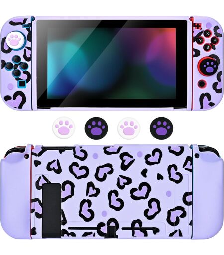 Protective Case for Switch,Soft Cover for Love Hearts Print with 2 Joycon Cases and 4 Thumb Grip Caps,Purple Switch