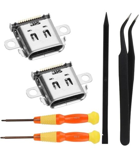 [Package]Our repair kit includes 2 charging ports, 2 screwdrivers, 1 tweezers and 1 lever. Simply use the Switch Kit tool to replace the old Type-C port or damaged by our new Type-C port.Premium Material Our switch charging socket is the same as the . It is made of metal material. It is safe to use, very durable and conductive.Compatible: Type C charging port replacement is compatible with Nintendo Switch console. Compatible with Nintendo Switch models: HAC-001 and HAC-001(-01).Installation instructions: welding is required. Make sure you have enough patience to repair the switch console charging socket. If you are not familiar with the operation, you should ask a professional to fix it.[Function]Use this USB-C charging port to solve the charging problem of your Nintendo Switch console. Solve your Nintendo Switch charging problems and optimize your gaming experience. ...