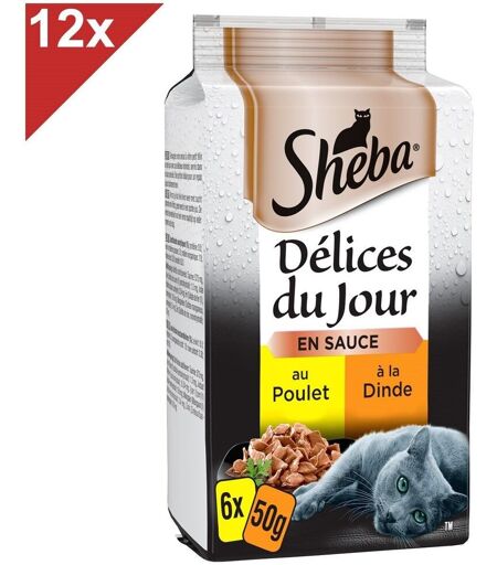 Sheba Délices Du Jour 72 Sachets Poulet Dinde En Sauce Pour Chat 50g (12x6)