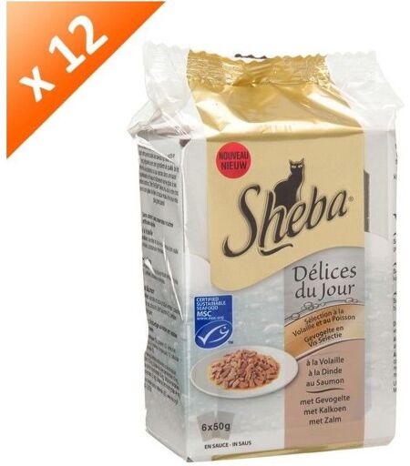 Sheba Délices Du Jour Sachets Fraîcheur En Sauce - 3 Variétés - Pour Chat - 6 X 50 G (X12)