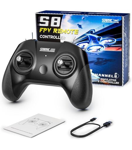 STARTRC Simulateur S8 pour Drone FPVQue vous soyez un pilote débutant ou expérimenté cherchant à perfectionner vos compétences, la télécommande STARTRC S8 vous permet de piloter des drones FPV dans des simulateurs réalistes. Améliorez vos compétences sans risquer d'endommager votre drone ou de vider votre portefeuille.Tous vos simulateurs FPV préférésLe STARTRC S8 est compatible avec les simulateurs les plus populaires ¿Uncrashed Simulateur de Drone FPV¿, ¿TRYP FPV¿, ¿FPV LOGIC¿, ¿FPV SkyDive¿, ¿Liftoff Micro Drones¿, ¿DCL - The Game¿, ¿The Drone Racing League Simulator¿, ¿AI Drone Simulator¿, ¿FPV Battleground¿, ¿FPVSIM¿, ¿EreaDrone¿, ¿Drone Flight Simulator Online¿, ¿I'm drone¿.Cette télécommande est compatible avec les ordinateurs de bureau, les appareils Android et les tablettes, et dispose également d'un mode Xbox pour une intégration transparente avec DJI Flight Simulator sur le système Windows.FPV SIMPLIFIÉFacile à utiliser, compatible avec Windows sans nécessiter de téléchargement ou installation de firmware sur PC portable ou fixe. Reconnu automatiquement dans le jeu - prêt à l'emploi. Réglage simplifié des paramètres permettant aux pilotes d'ajuster rapidement les réglages pour drones ou radiocommandes, optimisant ainsi les performances de vol en toute simplicité.Télécommande Professionnelle pour Simulateurs FPVConception 8 canaux spécialement dédiée à l'entraînement en vol de drones FPV, dotée de joysticks Hall haute sensibilité avec seulement 0,8 ms de latence pour un contrôle ultra-précis. Plus de soucis à avoir concernant les retards, coupures de courant ou autres dysfonctionnements lors des entraînements de vol à haute difficulté.PRISE EN MAIN FACILEDesign tactile réaliste, corps ergonomique pour une prise en main confortable. Disposition intuitive des touches identique à une télécommande réelle, permettant une transition fluide entre les vols FPV virtuels et réels.Contenu du colisLe package comprend 1 télécommande S8, 1 câble de données, 1 manuel d'utilisation. Les autres accessoires ne sont PAS INCLUS..La livraison depuis la France est prévue dans 5 jours ouvrés, n'hésitez pas à passer votre commande ...