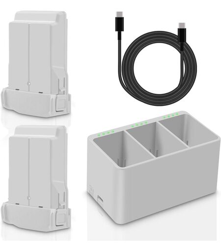 Compatibilité COOLSHOW Mini 4 Pro batterie est uniquement compatible avec dji Mini 4 Pro batterie,Mini 3 batterie,Mini 3 Pro batterie et Mini 3 Pro batterie plus.Pas pour la batterie mavic série 3.Multi-fonctionnel Mini 4/Mini 3 chargeur le Hub de charge bidirectionnel peut Charger le contrôleur à distance et 3 pièces Mini 3 pro batteries aussi bien. Le chargeur de batterie mini 4 pro/mini 3 avec la batterie peut être transporté comme une source dalimentation mobile pour charger votre téléphone cellulaire et dautres appareils. Le mini 4 pro/mini 3 pro chargeur hub peut être utilisé comme un organisateur de batterie, stocker les batteries pour un transport pratique.Mini 4 batterie Performancevous fournir environ 47 minutes de temps de vol avec Mini 3/Mini 3 Pro batterie, qui a mesuré à une vitesse constante de 21,6 km/h dans des conditions sans vent.Le temps de vol moyen sera de plus de 40 minutes,et le temps de vol réel dépend de différents facteurs comme la vitesse,le temps venteux,la température,le temps de charge et ainsi de suite.Chargeur rapide trois chargeurs de batterie 135 minutes pour 2453mAh batterie x3,195 minutes pour 3850mAh batterie x3; Deux batteries de charge 90 minutes pour 2453mAh batterie x2, 110 minutes pour 2453mAh batterie *1+3850mAh batterie *1, 130 minutes pour 3850mAh batterie *2; Une seule charge de batterie 45 minutes pour la batterie 2453mAh *1 et 65 minutes pour la batterie 3850mAh *1.Note dès réception de la batterie achetée, veuillez charger la batterie à la première fois pour vous assurer que la batterie est entièrement chargée avant le vol. Chargez la batterie régulièrement pour assurer la vie prolongée de la batterie et ne laissez pas la batterie dans un état déchargé pendant de longues périodes de temps.Mini 4/Mini 3 batterie chargeur Combo spécification tension nominale 7.38V, capacité 3850mAh,28.41Wh, tension de Charge 8.5V, poids de la batterie unique 121 g; Sortie chargeur 8.5V 4.0A( ), entrée chargeur 5V/9V/12V/20V 3A (charge rapide de soutien PD)Contenu du paquetMini 4 Pro/Mini 3 Pro batterie Plus remplacement *2,Triple Hub de charge bidirectionnelle *1, cordon de charge USB-C et manuel dinstructions *1..La livraison depuis la France est prévue dans 5 jours ouvrés, n'hésitez pas à passer votre commande ...