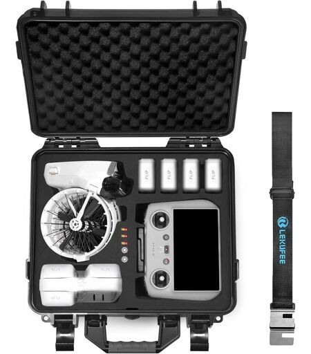 Design personnalisé Ce nouveau sac de transport étanche Lekufee est équipé de mousse EVA sur mesure et d'une bandoulière. Il est spécialement conçu pour le drone DJI Flip, DJI Flip (RC 2), DJI Flip (RC N3), Bundle Fly More DJI Flip et plus d'accessoires.Grande capacité Drone DJI Flip, jusqu'à 9 batteries (y compris la batterie interne du drone), télécommande DJI RC 2 ou DJI RC N3/RC N2, hub de charge, chargeur 65W, chargeur de voiture, cartes MicroSD (3 pièces), set de filtres ND, bâtons de contrôle, hélices, câbles et plus d'accessoires.Qualité supérieure Étui rigide pour drone DJI Flip, fabriqué avec expert à partir de plastique ABS haute résistance et doublé de mousse EVA douce sur mesure de qualité supérieure pour une protection et une durabilité accrues. L'étui de protection DJI Flip offre une protection robuste contre les collisions, les rayures et les impacts, gardant votre Bundle Fly More DJI Flip et vos accessoires en sécurité lors de vos déplacements.Protection renforcée Étanche et résistant à la poussière - IP67. Résistant aux chocs et aux impacts, ainsi qu'à la pression. Protection contre les chutes, adapté aux environnements extérieurs tels que les déserts, les plages, les forêts tropicales, les montagnes enneigées, etc.Prêt pour le voyage Il pèse 1,9 kg (4,2 lbs). Dimensions externes 34 x 12,8 x 31,5 cm (13,3 x 5 x 12,4 pouces). Vous pouvez facilement transporter cette val dans les avions, bateaux, trains, motos. Restez organisé et protégé pendant vos voyages. L'étui étanche pour drone est parfait pour les voyages ou le stockage à la maison.Ce que vous obtenez 1x Étui rigide pour drone, 1x Kit de mousse EVA personnalisé, 1x Bandoulière, Manuel d'utilisation, Garantie de 12 mois, et notre service client amical (uniquement l'étui. Les accessoires du drone DJI Flip ne sont pas inclus)..La livraison depuis la France est prévue dans 5 jours ouvrés, n'hésitez pas à passer votre commande ...