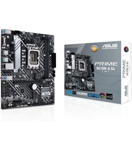 Prime H610M-A D4-Csm¿Carte Mère Professionnelle Intel H610 Lga 1700 Mic-Atx (Ddr4,Pcie 4.0,2Xm.2,Intel 1 Gb Ethernet,Displayport,Hdmi,D-Sub,Usb 3.2 Gen 2,Sata 6 Gbps,Aura Sync Rgb)