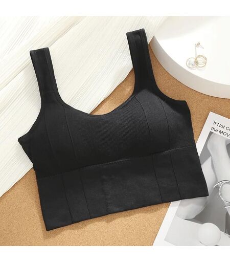 Femmes Sans Couture Crop Top Fitness Sous-Vêtements Fil Gratuit En Forme De U Bretelles Larges Soutien-Gorge De Sport Été Décontracté Une Pièce Tube Tops.Black.40-60kg
