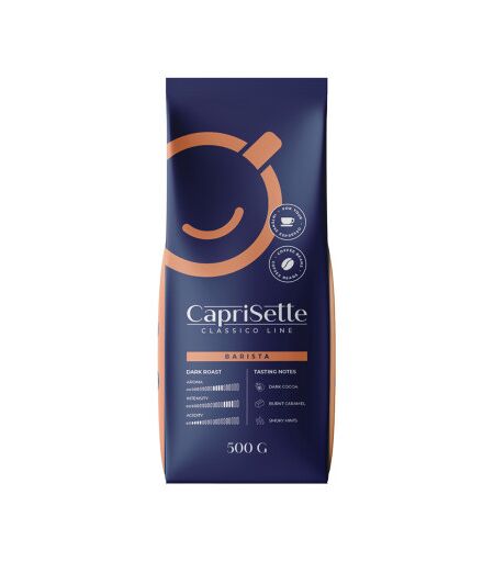 Pour un espresso intense.Découvrez les nouveaux classiques ! La gamme de cafés « Caprisette Classico » est conçue pour ceux qui apprécient les saveurs traditionnelles sans fioritures. Pas de notes complexes, rien d'autre qu'un café délicieux et fiable, sur lequel vous pouvez compter chaque jour.« Caprisette Classico Barista » est parfait pour les vrais amateurs d'espresso, ceux qui aiment leur café particulièrement corsé et fort. Composé de grains provenant d'Éthiopie et du Vietnam, ce mélange torréfié foncé, composé à 90 % d'arabica et à 10 % de robusta, offre des notes riches de cacao et de caramel brûlé à chaque gorgée, avec une délicieuse touche fumée.INTENSE ET CORPS PLEINCe mélange riche et corsé se caractérise par un caractère et une saveur délicieusement profonds.ARÔME RICHE ET TEXTURE CRÉMEUSESavourez une crème riche et une texture veloutée à chaque gorgée !CONÇU POUR LES INCONDITIONNELS D'ESPRESSOExcellent aussi bien en espresso pur qu'en base pour des boissons à base de lait, ce mélange est idéal pour tous les baristas amateurs.***Le café "Caprisette" : déjà des millions de fans. Y avez-vous déjà goûté ?Créés pour une délicieuse tasse de café quotidienne, ces mélanges uniques aux saveurs variées ont conquis le cœur et le palais de milliers d'amateurs de café.Envie d'un espresso riche ou d'un latte crémeux ? Nous avons torréfié ce café de manière à ce qu'il convienne à toutes vos recettes préférées. Plongez dans l'univers des saveurs de "Caprisette" et découvrez celle que vous préférez.Des millions de personnes en sont déjà tombées amoureuses, nous sommes sûrs que ce sera également le cas pour vous !Ingrédients : grains de café torréfiés.Conditions de stockage : à conserver dans un endroit frais, à l’abri de la lumière directe du soleil. ...