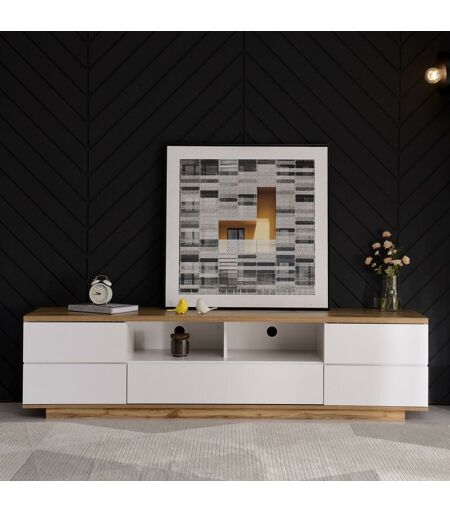 Fortuna Lai - Meuble tv épissage bicolore 180cm - avec Etagères et Meubles de Rangement, 5 Portes, Style Moderne- Blanc