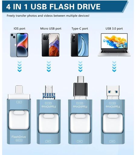 CMJAAGUR-Clé Usb 4 En 1 De Stockage Externe Compatible Avec Ios/Android/Tablette/Pc Et Appareils Avec Micro Usb 3.0/Otg 128 Go (Bleu)[M2310]