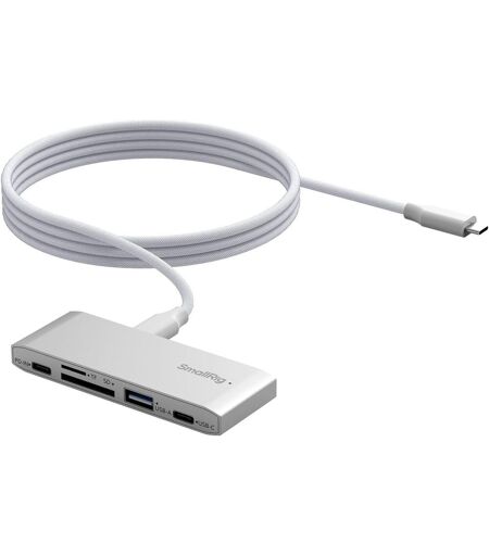 Transfert de données à haute vitesse et deux emplacements pour cartes lecteur de cartes mémoire SmallRig 5 en 1 équipé de deux ports USB-C Gen 2 et de deux emplacements pour cartes SD/TF, prend en charge des vitesses de transfert de données ultra-rapides de 5 Gbit/s. Il est parfait pour les photographes et les voyageurs qui ont besoin de transferts de fichiers rapides et efficaces en déplacement. Pratique le lecteur de cartes est doté de deux emplacements pour cartes SD/TF, il suffit de le brancher et de l'util r, ce qui prend en charge la lecture et l'écriture simultanées, avec une vitesse de lecture imale de 100 Mo/s, pour les cartes SD, SDHC, SDXC, Micro SD, Micro SDXC et Micro SDHC. Remarque ne branchez pas ou ne débranchez pas le chargeur PD pendant le transfert de données, car les différents protocoles PD peuvent interrompre la transmission. Veuillez assurer une alimentation électrique stable Chargement PD 65 W ce lecteur de carte mémoire prend en charge le chargement PD 65 W qui permet un chargement à haute vitesse, garantissant un transfert de données stable. Il est idéal pour un travail et un divertissement fluides sans se soucier des problèmes d'alimentation. Câble USB-C de 120 cm (47,2 pouces) le câble USB-C de 120 cm (47,2 pouces) offre flexibilité et commodité pour la lecture/écriture de données en déplacement à partir de téléphones mobiles. Conception compacte et adaptée aux voyages conçu pour les photographes de voyage et les créateurs de contenu, ce lecteur de cartes léger et portable est le compagnon idéal pour une utilisation en déplacement. Sa construction durable garantit la fiabilité pendant les déplacements. ...