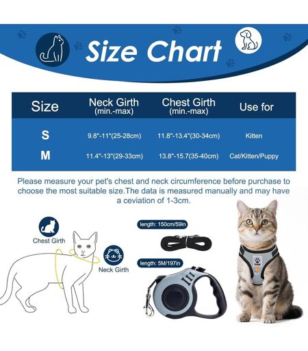 Cmjaagur-Arnet Pour Chat,Harnais Chien Anti Évasion Avec Corde De Traction Télescopique Automatique De 5m/16.4 Ft, Réglable Et Anti Fugue Harnet Pour Chat, Harnais Chaton (M)[M677]