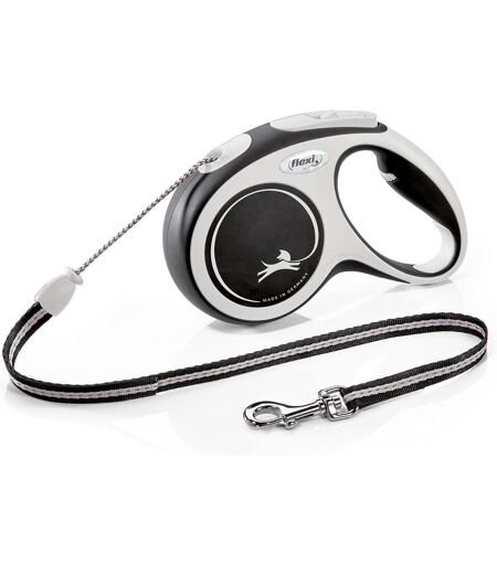 Laisse unique en son genre Cette laisse design bicolore possède tous les éléments pour faire de la p nade un moment de plaisir. Une grande liberté d'action mais contrôle et sécurité grâce à son système de freinage amélioré. Des accessoires pratiques adaptables à souhait LED Lighting System, la lampe pour les p nades nocturnes ou la Multi Box pour y déposer friand s ou sacs à déjections. La New Comfort pour profiter pleinement de vos p nades Confort de la poignée La laisse ""New Comfort"" version cordon de Flexi est équipée d'une poignée conçue pour offrir un confort optimal pendant les p nades. La poignée ergonomique est conçue pour une pr en main facile et agréable, réduisant la tension sur votre main lors de la tenue de la laisse Système de réglage de la longueur Bien que la version sangle n'ait pas le mécanisme rétractable du cordon, elle est dotée d'un système de réglage de la longueur. Cela vous permet de régler facilement la longueur de la laisse en fonction de la proximité que vous souhaitez garder avec votre chien Poignée ergonomique La poignée de la laisse ""New Comfort"" version cordon est conçue de manière ergonomique pour une pr en main confortable. Cela réduit la tension sur votre main pendant les p nades et vous permet de garder le contrôle sur votre chien. Laisse cordon de 5 m, Pour des chiens jusquà 15 kg, Système de freinage confortable, Composants souples La Garantie Flexi Un chien est plus qu'un animal de compagnie ; Notre chien nous donne tant ! Nous, les propriétaires de chiens, aimerions leur donner autant en retour. Un foyer sûr et une belle vie. Nous voulons que notre chien ait tout ce dont il a besoin, notamment de faire suffisamment d'exercice et ceci régulièrement, c'est pourquoi les laisses flexi sont fabriquées en un seul endroit en Allemagne ...