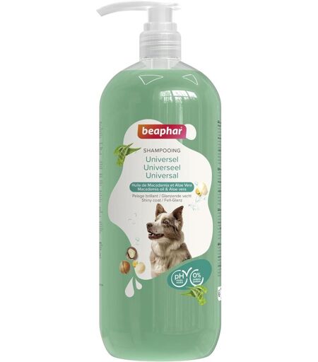 SHAMPOOING DOUX ET VEGAN Le Shampooing Essentiel Universel de Beaphar a un pH neutre et ne contient ni parabène ni silicone. Il est également vegan, et est idéal pour une utilisation régulière. PELAGE BRILLANT Pour tous types de chiens, le Shampooing Essentiel Universel donne un pelage doux et brillant à votre chien, tout en laissant un agréable parfum de frais et de propre. CONSEILS DUTILISATION Mouiller lanimal à leau tiède. Appliquer le Shampoing Essentiel pour chien sur son dos et masser jusquà ce que le shampooing mousse. Rincer abondamment puis sécher. COMPOSITION Le Shampoing Essentiel Universel de Beaphar est sans parabène ni silicone et a un pH neutre. Il contient de lHuile de Macadamia et de lAloe Vera qui vont adoucir le poil du chien. NOS ANIMAUX SONT AUSSI NOTRE FAMILLE Pour préserver le bien-être de nos compagnons, Beaphar donne accès à des soins et des produits de qualité à prix abordables à tous les propriétaires danimaux. ...