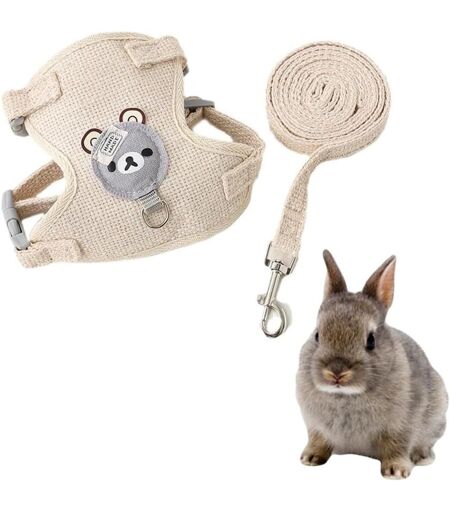 Cmjaagur-Laisse Pour Lapin Nain Accessoires, Harnais Pour Lapin, Colliers Et Laisses Pour Petits Animaux, Réglable, Respirant, Für Kaninchen, Katzen Und Andere Kleintiere(Beige, S)[M2129]