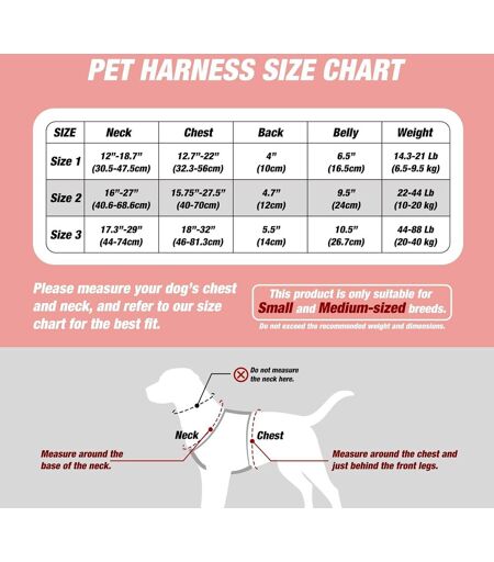 Dégradés de Couleurs Uniques Ces harnais chien dégradés de couleurs se distinguent par leurs dégradés de couleurs romantiques et oniriques et rendent votre animal de compagnie particulièrement visible dans une foule Matériaux de Qualité Supérieure et Tailles Réglables Nos harnais pour chiens sont fabriqués en polyester durable et respirant et sont équipés de 3 glissières coulissantes réglables. Ajustez la longueur en fonction de la taille de votre chien pour assurer un confort imal. Le siège parfait spécialement adapté à votre ami à fourrure Facile à Enfiler Il suffit d'ouvrir la fermeture rapide sans soulever les pattes de votre chien pour terminer le processus de port et l'enfiler rapidement et gagner du temps. Le design du collier en forme de Y est léger et s'adapte comme un collier sans provoquer de frottement sur les épaules, ce qui évite le risque d'étouffement, d'abrasion ou de gêner les mouvements Design Multi-points de Connexion Notre harnais veste pour chiens offre une liberté de mouvement suffisante pour votre chien et dispose de 3 anneaux en D métalliques connectables. Choisissez le point de connexion arrière pour des p nades confortables ou le point de connexion avant à des fins d'entraînement Cadeau Parfait Laissez notre harnais accompagner votre ami à fourrure à travers chaque moment joyeux afin que le temps de jeu de votre animal soit plus détendu et agréable ...