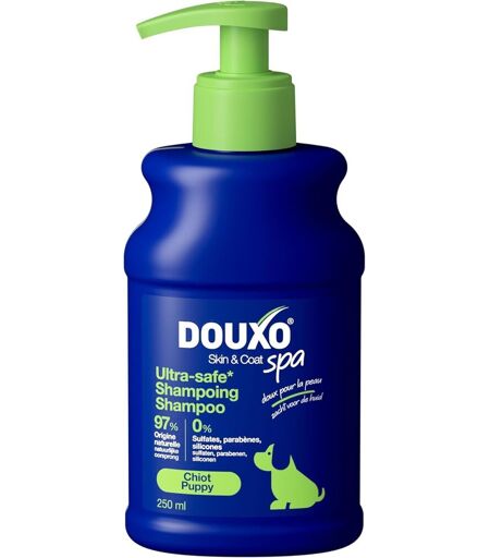 NETTOYAGE ULTRA-SÛR, HYPOALLERGÉNIQUE ET DOUX POUR LA PEAU Le shampoing pour chiots DOUXO Skin & Coat SPA offre un nettoyage doux mais efficace tout en respectant la peau et le poil délicats du chiot. Sa peau est saine et hydratée et son pelage doux et brillant après chaque bain. HYDRATATION EN PROFONDEUR POUR UN PELAGE ÉCLATANT Enrichi en oligosaccharide d'alpha-glucane, un prébiotique, ce shampoing doux et hydratant nettoie le pelage de votre chiot tout en protégeant le microbiote de sa peau. 97% D'INGRÉDIENTS D'ORIGINE NATURELLE ET 0% D'INGRÉDIENTS CONTROVERSÉS Le shampoing pour chiot DOUXO Skin & Coat SPA est exempt d'ingrédients agressifs et controversés, pour un nettoyage ultra-sûr et ultra-doux qui respecte la peau de votre animal. MARQUE N°1 RECOMMANDÉE PAR LES VÉTÉRINAIRES DOUXO est reconnue et recommandée par les vétérinaires. En la choisissant, vous faîtes confiance à ceux qui connaissent le mieux la peau de nos animaux et vous leur offrez les produits les plus sûrs. ROUTINE COMPLETE POUR LA PEAU ET LE PELAGE Pour une routine de toilettage complète, associez ce shampoing aux lingettes multi-u s, au nettoyant pour oreilles, à la mousse sans rinçage ou au spray, et offrez à votre chien une expérience digne d'un spa qui laisse sa peau et son pelage en bonne santé. ...