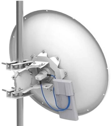 mANT30 is a professional class 5 GHz 30dBi dish antenna, built to the highest industry standards. Built to seamlessly accomodate Mikrotik Basebox series products, but can be used for any pole mounted wireless device due to the adequate length of the included FlexGuide cable. The antenna comes packaged with all necessary accessories and cables. Note: Basebox wireless device pictured for illustrative purposes. It is ...