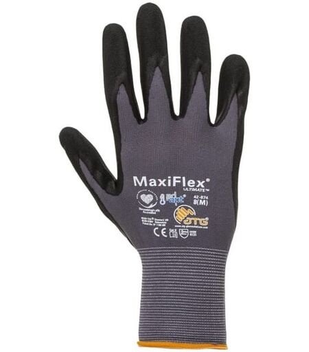 Avantages : Le gant le plus respirant du marché 25% plus fin La forme ergonomique évite la fatigue de la main et augmente le confort Une technologie de pointe garantit des bouts de doigts lisses et arrondis, et donc d'excellentes caractéristiques tactiles au bout des doigts Grâce la doublure répartie uniformément sur le revêtement nitrile, la peau n'est en contact qu'avec la doublure intérieure douce Caractéristiques : Entièrement respirant Excellente préhension grâce à des picots nitrile sur la paume de la main Hypoallergénique et certifié Öko-Tex® Catégorie : II Convient pour le numéro d'origine : 42-874.10 Domaine d'application : Bricolage Finition et contrôle Jardinage Travail avec de petites pièces N'importe quels travaux de montage Travaux d'entretien Logistique et stockage Manipulation d'outils et d'instruments Câblage Particularités : Le MaxiFlex® Ultimate? a été spécialement conçu comme gant perméable à l'air et est une référence lors de travaux de précision en environnement ...