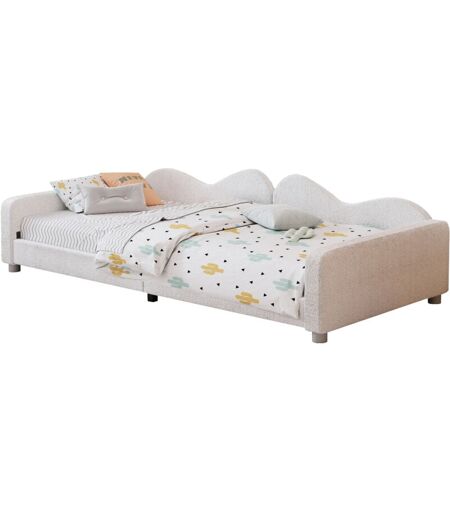 Gutent - Lit d'enfant, Sofabed 90x200cm, Cadre de lit en tissu ourson, avec dossier et accoudoirs-Blanc