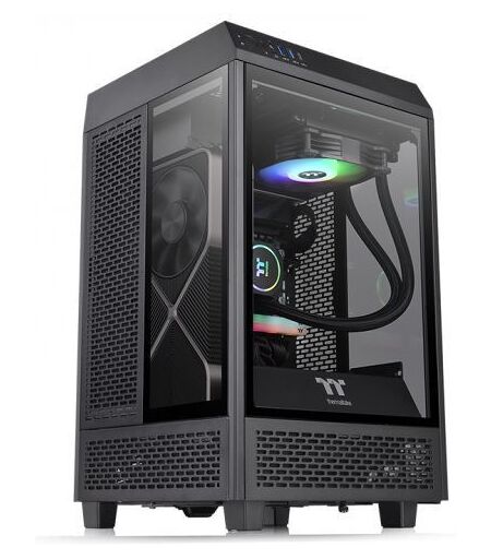 Thermaltake The Tower 100 - Tour - mini ITX - panneau latéral fenêtré (verre trempé) - pas d'alimentation (PS/2) - noir - USB/Audio
